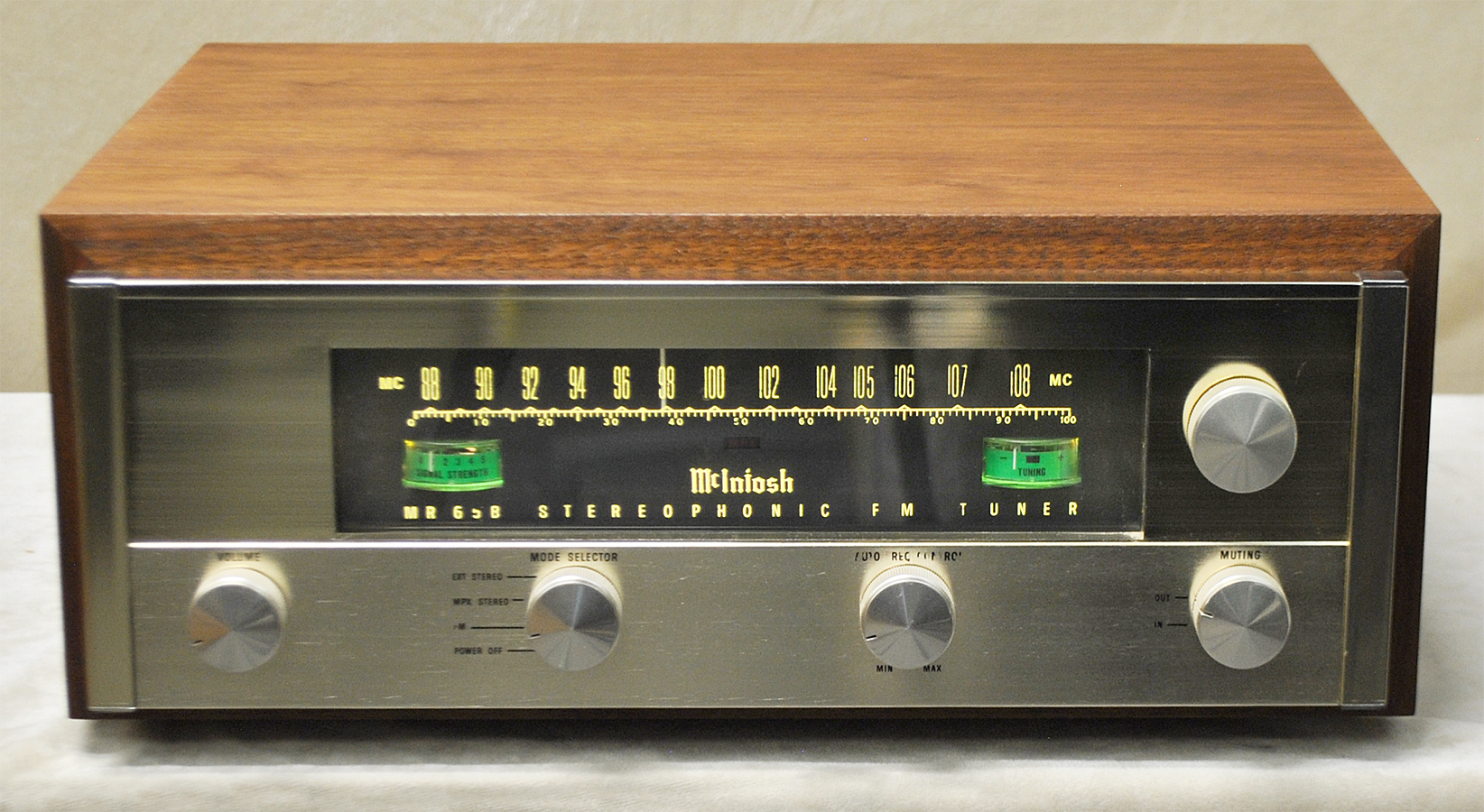 Gorgeous Classic 60's Vintage McIntosh MR65B Analog Tube FM Tuner in a Beautiful Walnut Cabinet. Restored, Realigned and Relamped w/LEDs.Note: Some Lettering Missing. Ex.Cond 8.8