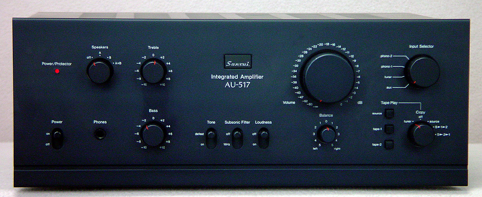Vintage Late 70's Beauty, Wonderful Sound and Plenty of Power! Classic Sansui AU-517 Integrated Amplifier. Rated at 65 watts rms/ch into 8 ohms. Phono, Aux, Tuner, Tape 1&2 inputs. Preamp out/ Main in w/separation switch. Speakers A&B, (3) AC Outlets. Fully Recapped and Restored and Ready to Rock! Ex.Cond 9.0