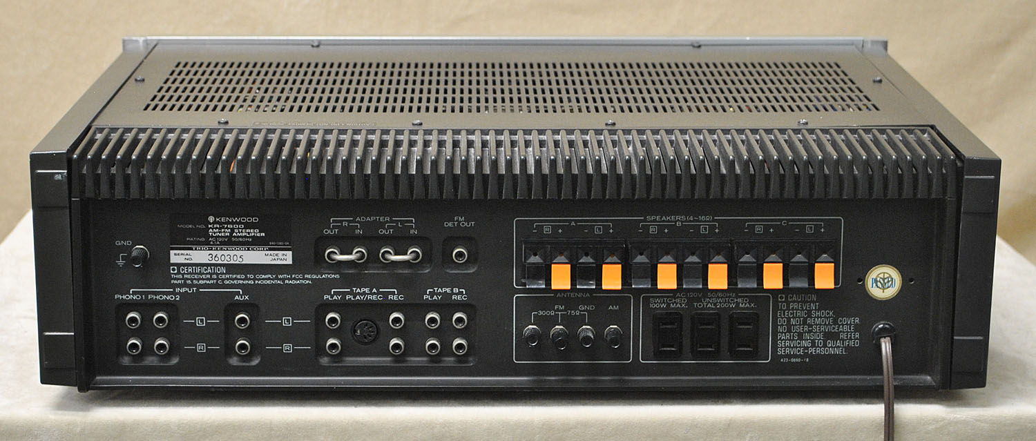 Classic Early 80's Silver Faced Kenwood KR-7600 Stereo Receiver. Rated at 80 watts rms/ch into 8 ohms. Features: Analog AM/FM Tuner, (MM) Phono, Aux, Tape inputs, Speakers A&B. Fully Recapped, Restored, Aligned and LED Lamp Upgrade. 1yr. P&L Warranty. Ex.Cond 8.9