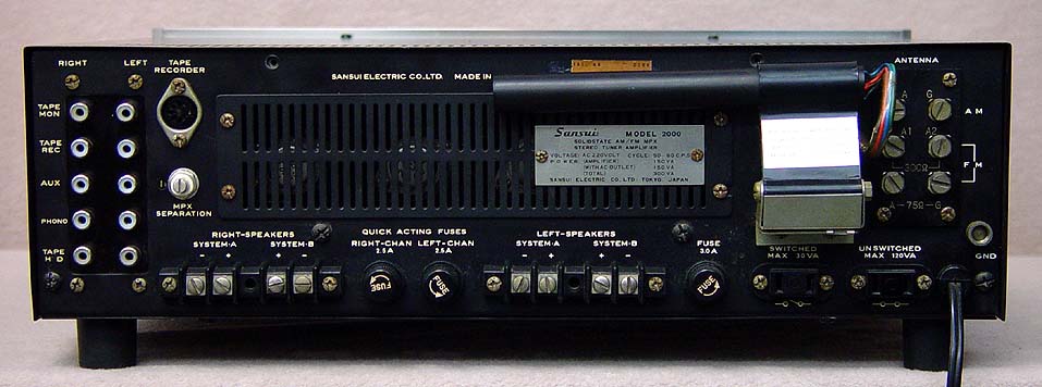 Vintage Early 70's Sansui 2000 Receiver. Rated at 30 watts per channel RMS into 8 ohms. Features: (MM) Phono, Aux, Tape 1&2 inputs. Analog AM/FM Tuner.Recapped, Restored and Aligned, LED Upgrade. Includes quick start guide and original box. Ex.9.5